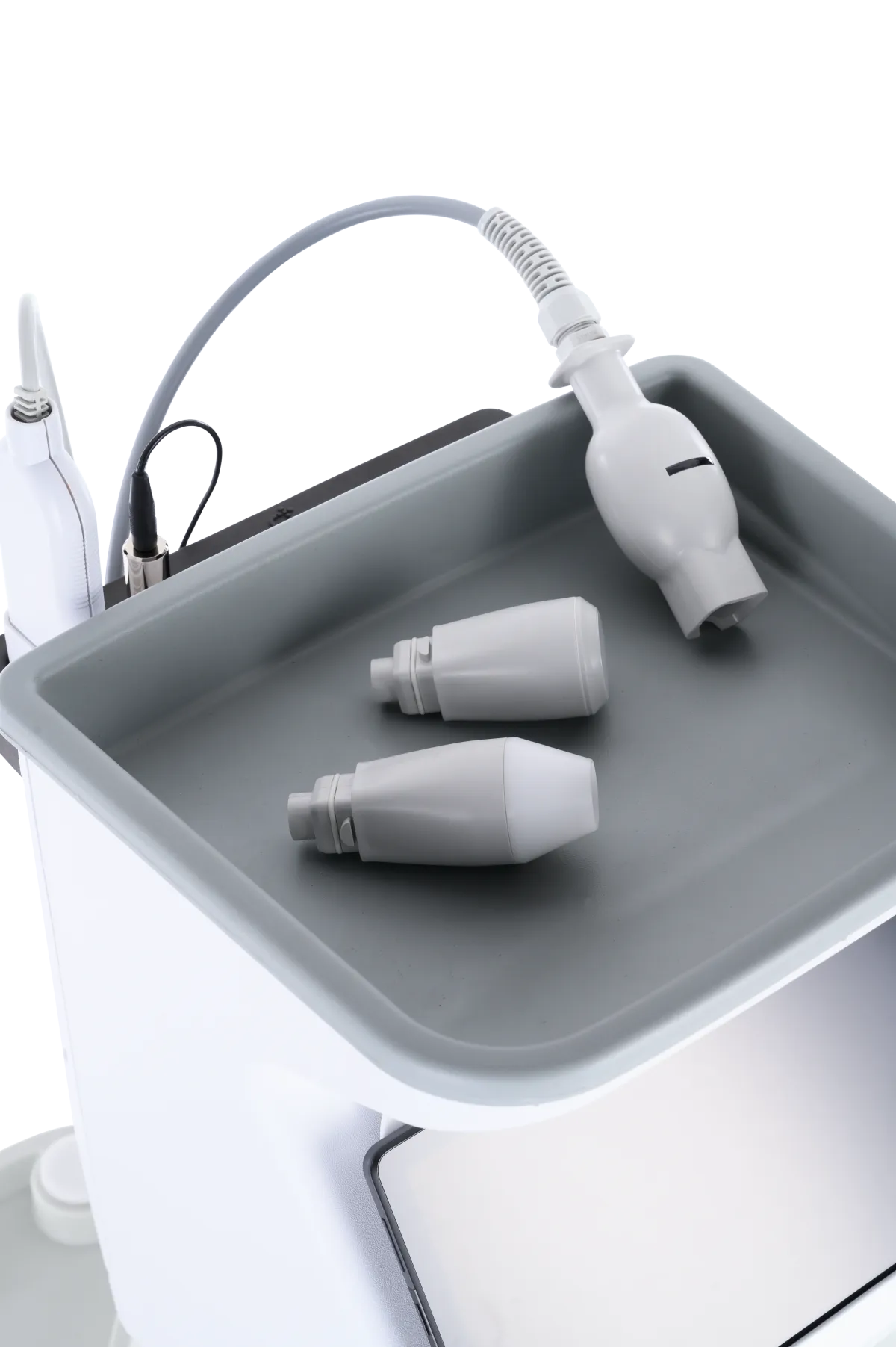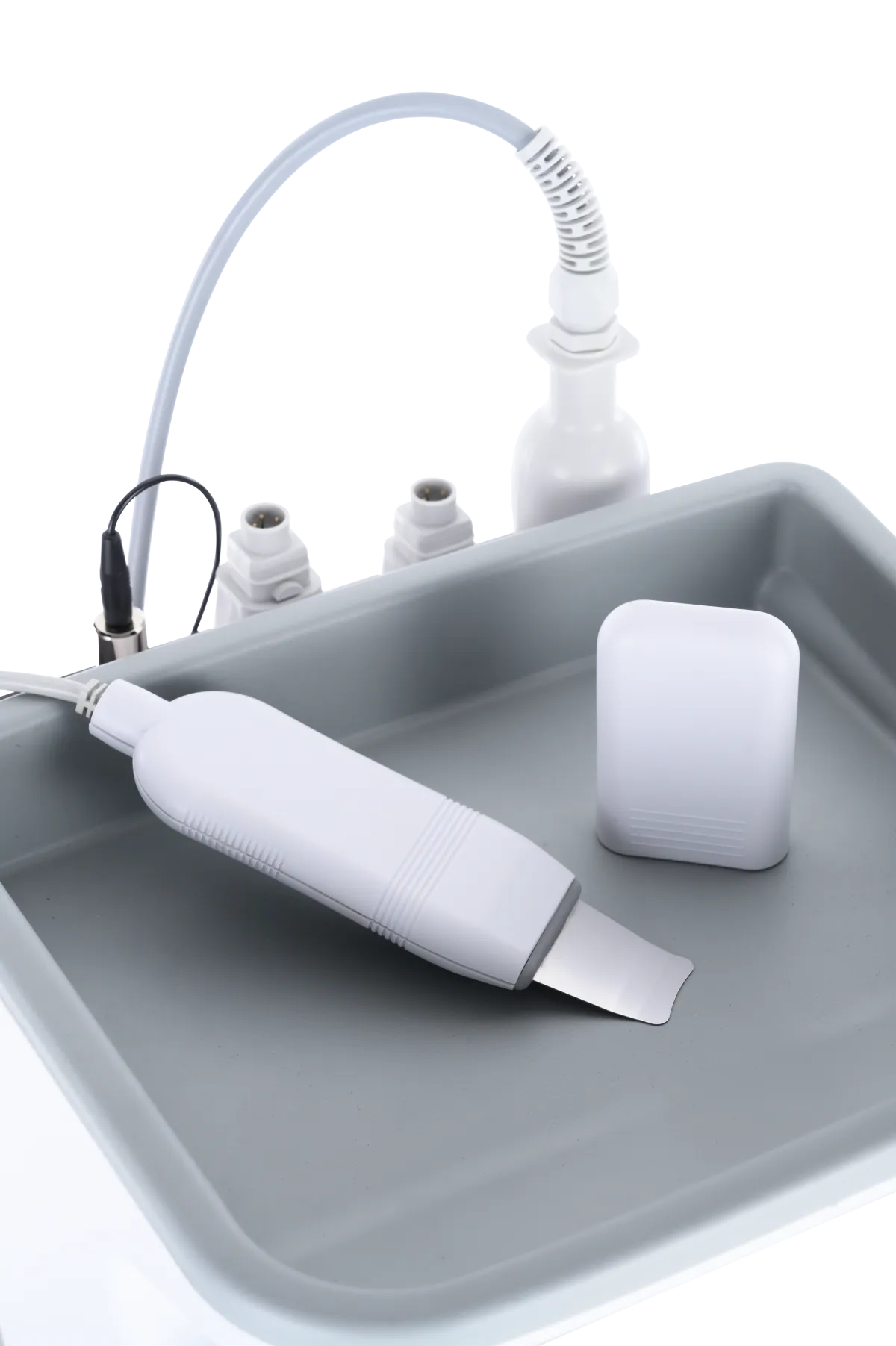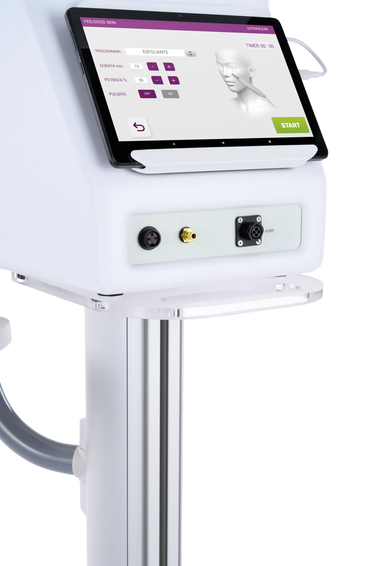 The new technology with a dual function: bipolar capacitive radiofrequency with two differently sized heads, and low-frequency ultrasound for deep cleansing of the skin, and for delivering active ingredients of cosmetic products.
